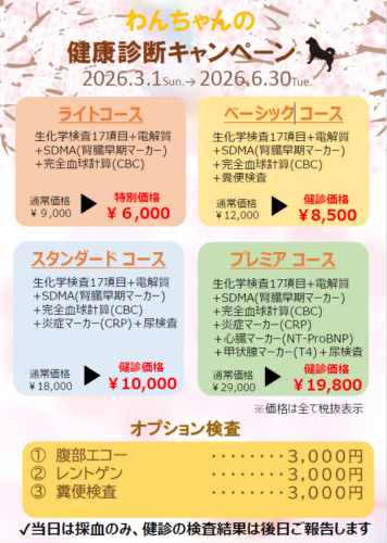 狂犬病予防接種やフィラリア検査と一緒に健康診断を受けてみませんか?